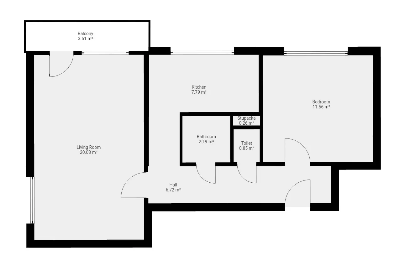 Bytová dispozice zahrnuje obývací pokoj se vstupem na balkon, samostatnou ložnici, kuchyni, koupelnu a oddělené WC. Vyšší podlaží zajišťuje dostatek denního světla i klid od ruchu ulice, což vytváří příjemné prostředí pro každodenní život.