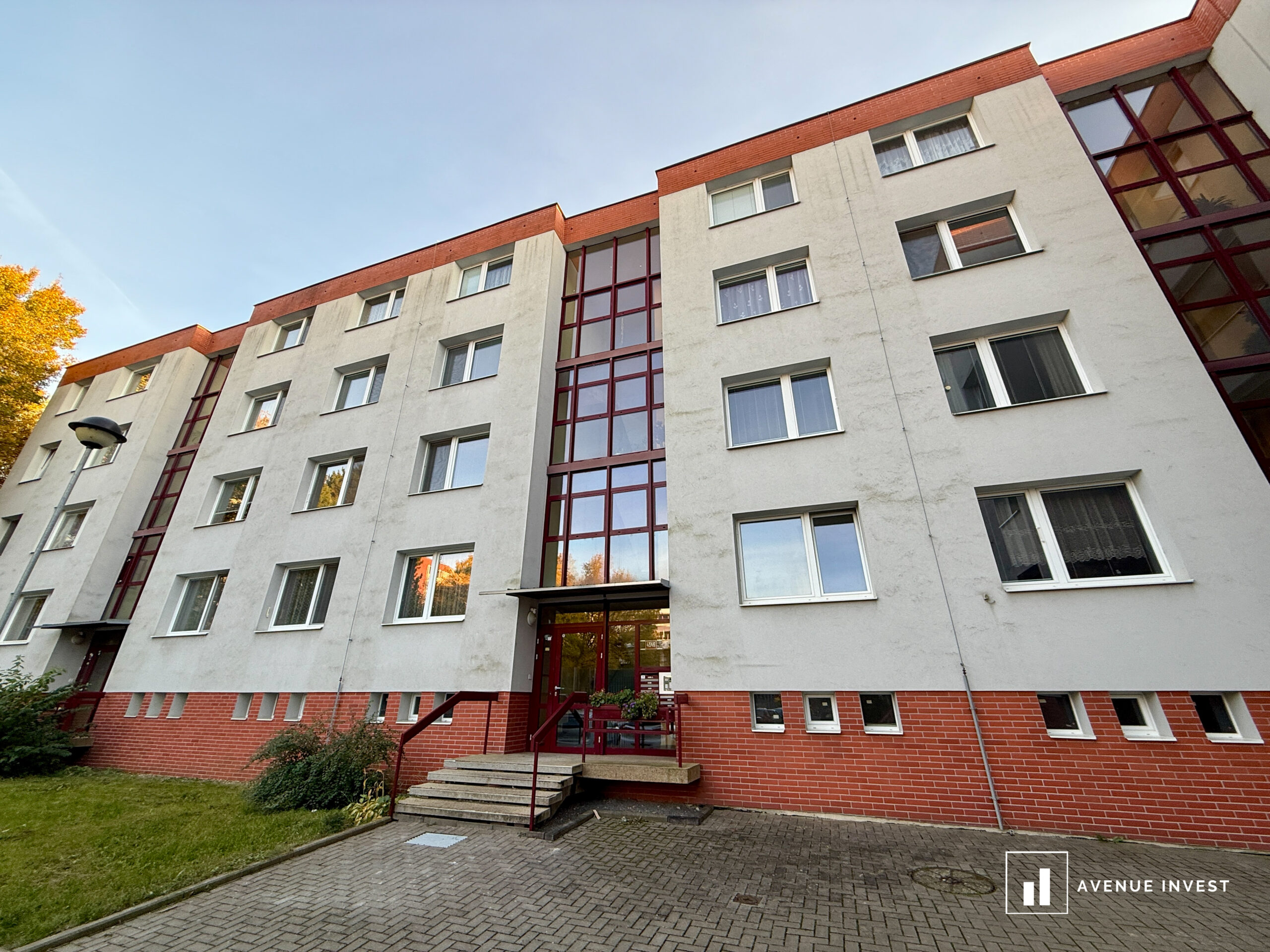 Dispozice zahrnuje prostorný obývací pokoj s kuchyňským koutem, dvě samostatné ložnice, koupelnu, samostatné WC a komoru pro úložný prostor. Díky velkým oknům působí interiér světlým a vzdušným dojmem.
